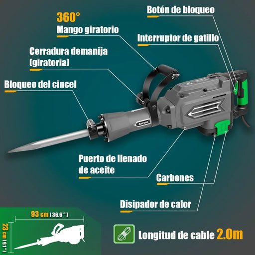 Ver todos los detalles🔨 DEMOLEDOR ROMPEDOR DE CONCRETO ANIRONA DH115 (1900W, 50J) La Potencia Exigente para Tareas Pesadas de Demolición Profesional ⭐ LA VENTAJA PARA E...