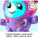 3 niveles de aprendizaje con etapas inteligentes que se adaptan al crecimiento de tu bebé, le enseñan el alfabeto, los colores, los números del 1 al 10 y los opuestos.