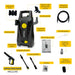 Potencia y Rendimiento Superior: Con una presión de 1700 PSI y un caudal de agua de 330 l/h, esta hidrolavadora es ideal para cualquier trabajo de limpieza en el hogar. Su motor de 1.6 kW le da la potencia necesaria para cualquier tarea.