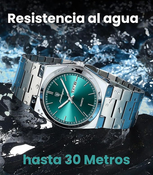 Ver todos los detallesRELOJ IMPERMEABLE CUARZO PARA HOMBRE CORREA PLATEADO BISEL VERDE GRADO B
