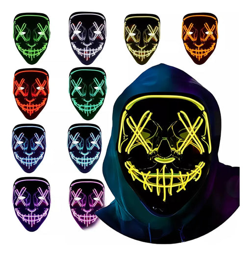 TK ONLINE CDMX⚡ MÁSCARA LED LA PURGA (Diseño Neón 2 Colores) 👻 Estas máscaras usan un cable electroluminiscente (EL wire) que se ilumina alrededor del diseño, cr...