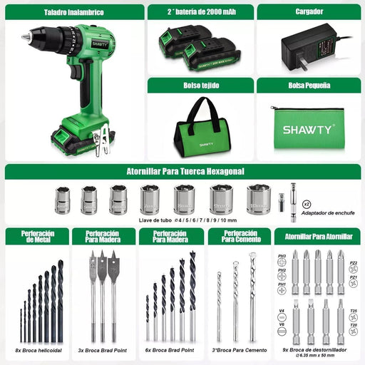 Ver todos los detallesShawty Taladros Inalambrico 1/2 , 50n.m Taladro Eléctrico Inalámbrico Sin Escobillas De 2 * 2000 Mah BaterÃas, 20+3 Martillo Perforador Con 2 Velocidades Y Bolsa GRADIO A